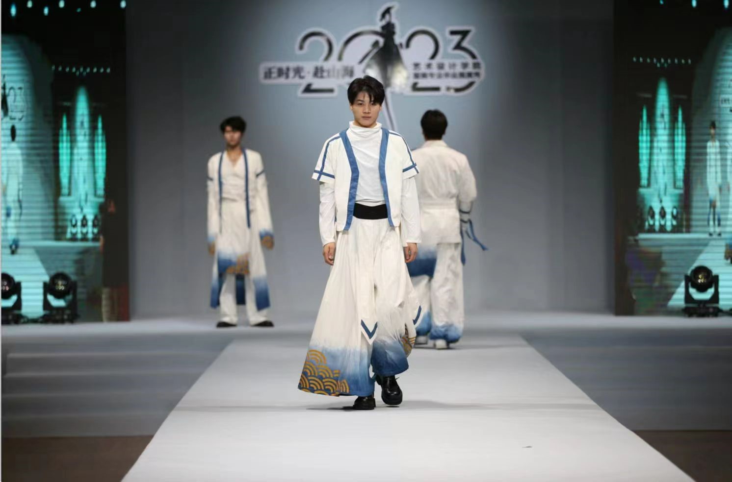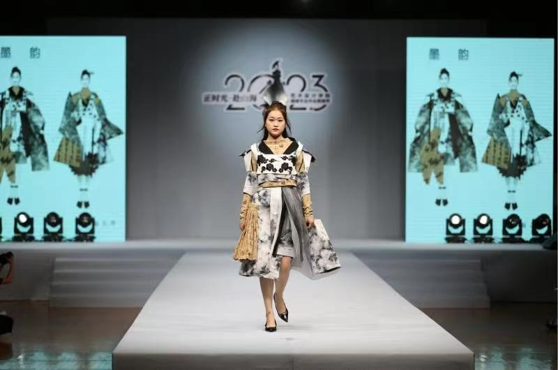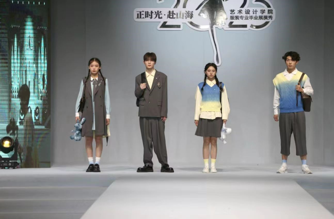 本届服装毕业展演以“正时光.赴山海”为主题,从服装设计专业毕业生作品中精心挑选出23个系列72套作品进行展示。年轻设计师们以各自不同的设计主题发挥了对时尚的理解,服装作品灵感来源广泛,崇尚自然、始于创意、归于实用,涵盖了社会热点、文化的传承与创新、科技探索等方向,展出的每件设计作品背后都凝聚着各位毕业生和指导教师的辛勤汗水,蕴含着艺术公司美学育人的教育理念,承载着公司和合作单位的鼎力支持。活动下半场,公司校企合作单位江苏华艺时装集团股份有限公司还为我们带来主题为《启悦》的精彩时尚秀。